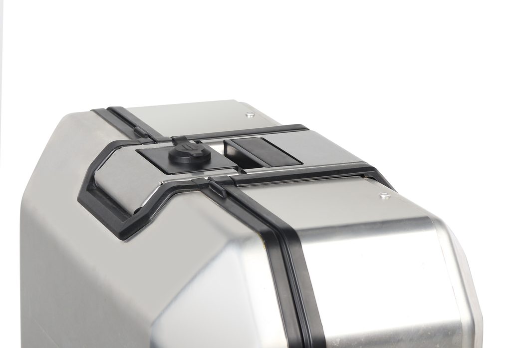 Unikátní integrovaný mechanismus zámku a madla umožňuje jednoduché ovládání jednou rukou a snadnou demontáž z motocyklu.