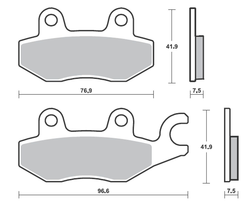 • SA: sintrovaná směs určená pro přední brzdy, vyznačující se zvláště dobrou účinností za všech podmínek. Ideální alternativa k OEM destičkám.
