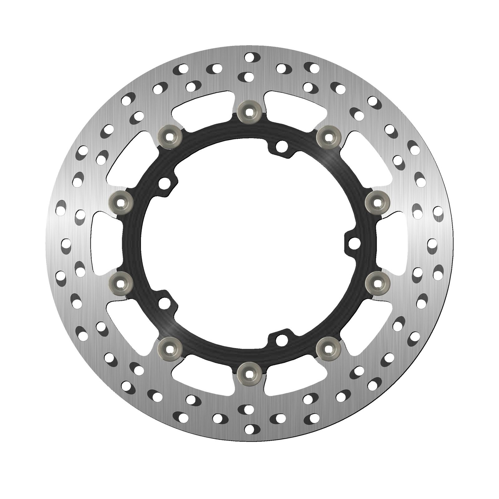 Barva brzdné plochy je výsledkem speciálního tepelného zpracování, které dodává oceli toto charakteristické duhové zbarvení, díky němuž bude váš stroj vynikat mezi ostatními. Chladící otvory nejsou orientovány vertikálně, ale horizontálně a jsou uspořádány ve skupinách po třech v každém směru. Ventilační otvory společně se speciálním tepelným zpracováním zabraňují přehřátí materiálu, které by mohlo vést k deformaci kotouče.