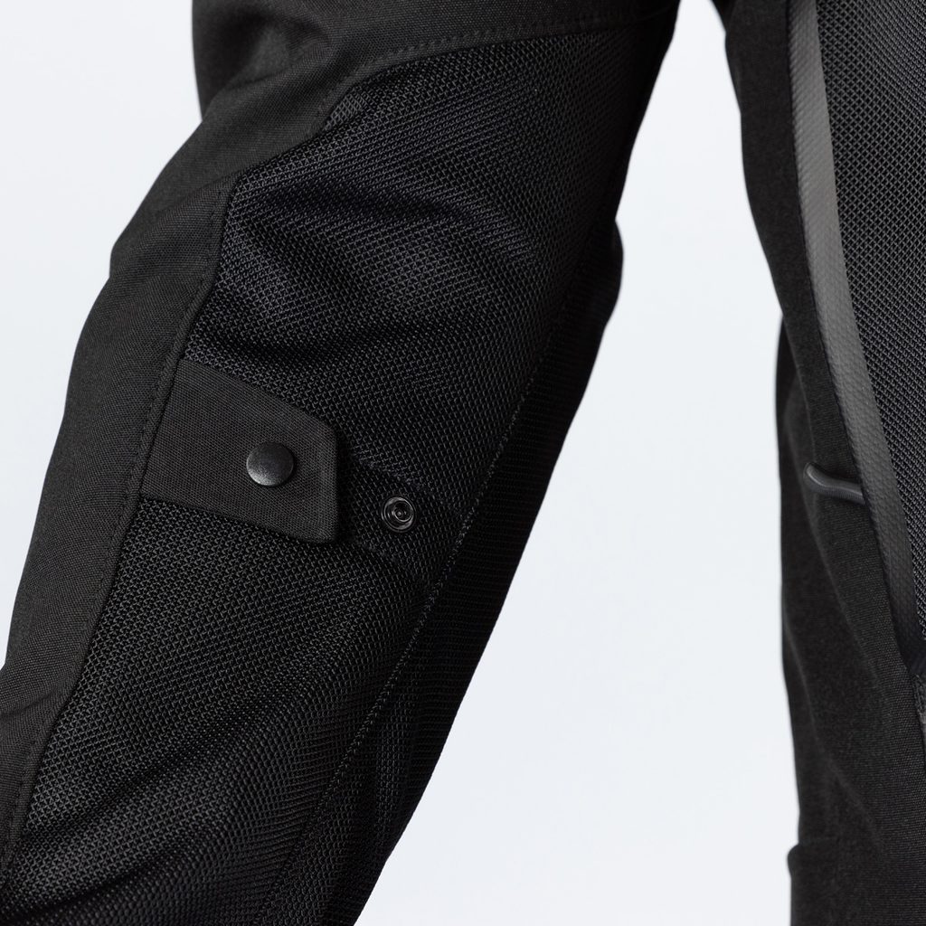 Bezpečnost je základním prvkem designu této bundy díky certifikovaným chráničům na ramenou a výškově nastavitelným chráničům na loktech, připraveným na nečekané situace. Pro ty, kteří hledají ještě větší ochranu, je bunda připravena pro montáž zpětně instalovatelného chrániče zad.