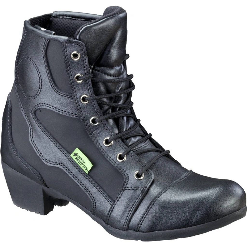 jsou elegantní obuví na motocykly a skůtry. Na první pohled zaujmou kvalitním a stylovým koženým zpracováním a především podpadkem, který není u moto bot obvyklým prvkem. Díky dlouhému štěrování bota pevně obepne chodidlo. Navíc vyztužení v oblasti paty, špiček a kotníků zaručuje vysoký stupeň bezpečnosti. Komfortní výstelka ze savého materiálu pak má na starost vnitřní pohodlí a příjemné vnitřní klima i při vysokých teplotách. Z praktického hlediska potěší i přítomnost elastického panelu pro ulehčení nazouvání bot. Nezanedbatelným detailem je umístění reflexního prvku na patu, čímž je ještě zvýšena pasivní bezpečnost, především za zhoršených světelných podmínek. Měkký došlap umožňuje pohodlné nošení i mimo motorku, a tak můžete být dámou za každé situace. Díky těmto skvělým vlastnostem a módnímu designu jsou dámské kožené moto boty W-TEC NF-6092 oblíbenou volbou motorkářek.