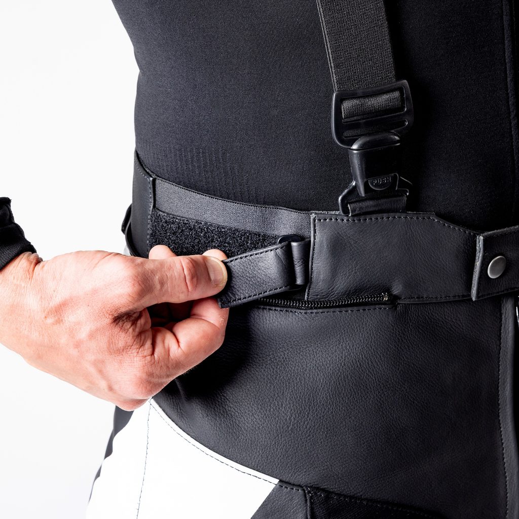 • Kožené akordeonové panely na ramenou, přes kolena a na hýždích