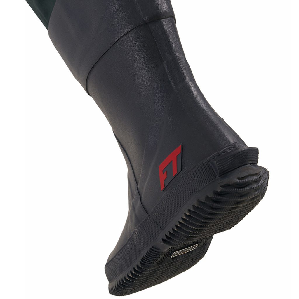 Dětské brodící kalhoty s integrovanými botami, odolná 4vrstvá tkanina s hi-tech membránou HARD-TEX, voděodolnost 20000 mm, prodyšnost 7000g/m2/24 hod, vodoodpudivá úprava Teflon™ DuPont®, tvarovaná kolena, velká náprsní kapsa, vnitřní kapsa, integrované gumové boty s vnitřní neoprenovou podšívkou
