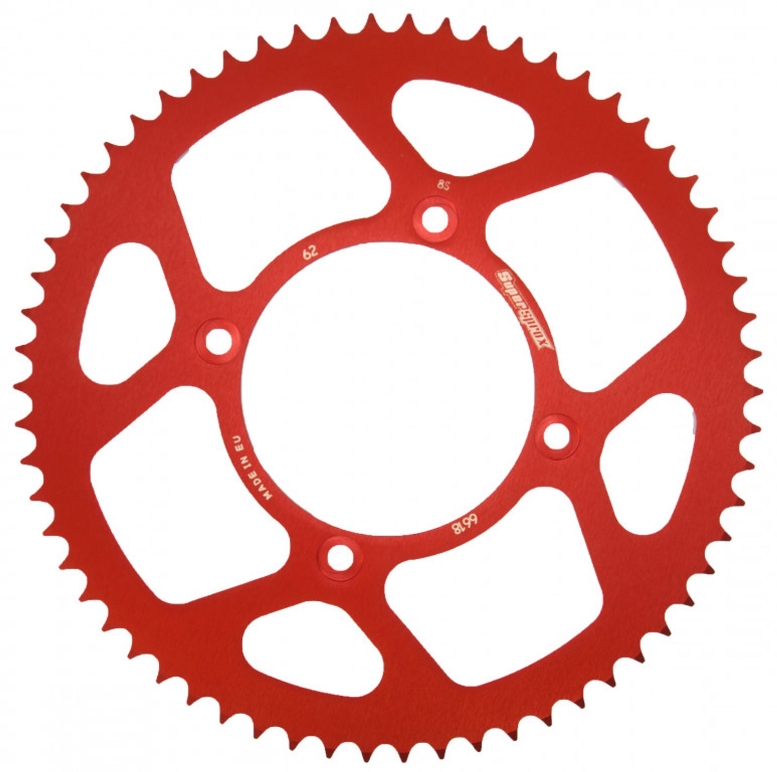 Hliníková řetězová rozeta SUPERSPROX RAL-6618:62-RED červená 62 zubů, 420