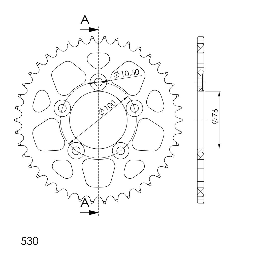 Hliníková řetězová rozeta SUPERSPROX RAL-7090:42-BLK černý 42 zubů, 530