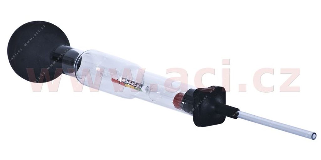 Pro měření hustoty kyseliny v baterii.