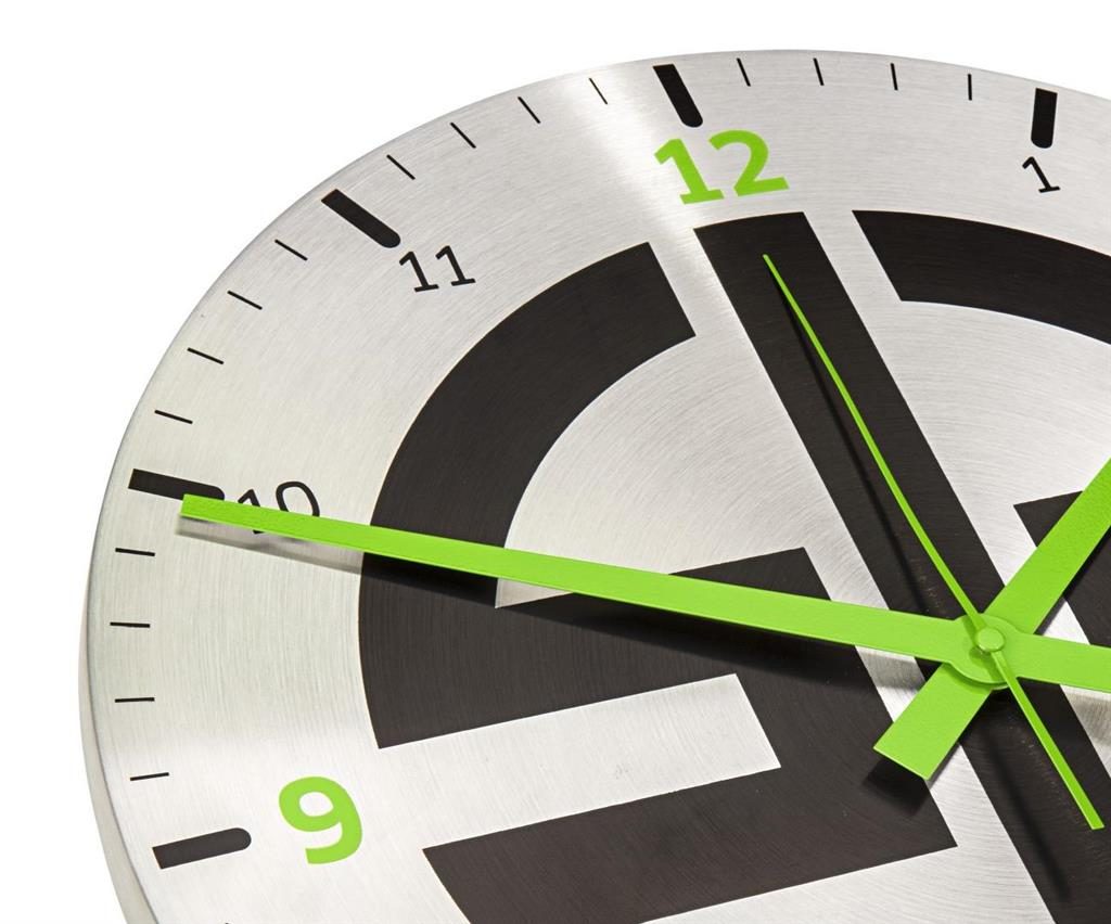 Sledujte čas na těchto hodnotných nástěnných hodinách Kawasaki s logem River Mark z broušeného hliníku.
