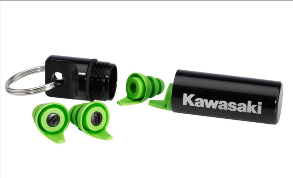 Kawasaki 24dB jsou opakovaně použitelné chrániče sluchu, speciálně navržené pro jízdu na motocyklech (v dopravních podmínkách i na okruzích) a ke snížení hluku na bezpečnější úroveň.Špunty do uší v zelené barvě Kawasaki jsou vyrobeny z materiálu „lékařské kvality“ pro dlouhodobé pohodlí při nošení; minimalizace podráždění a alergických reakcí.