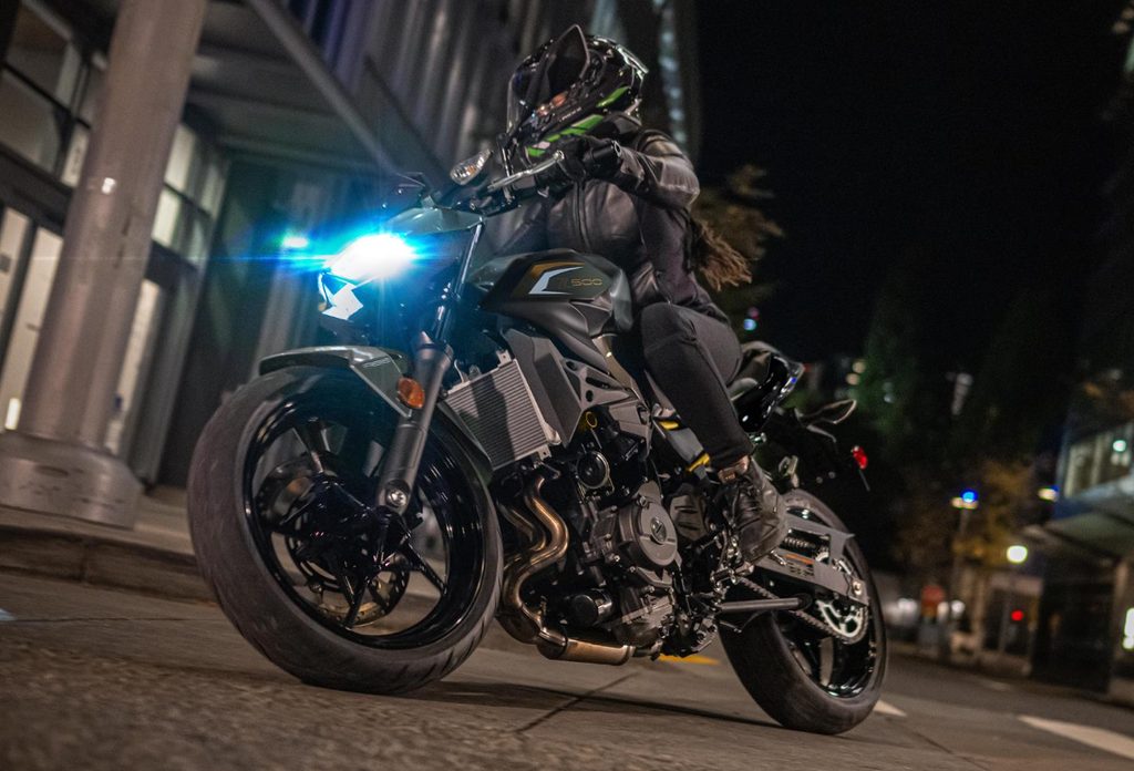 „Tvář“ nového Z500 je založena na nově navrženém trojitém světlometu, obklopeného ostře řezanou přední maskou, která mu dodává intenzivní a agresivní vzhled.