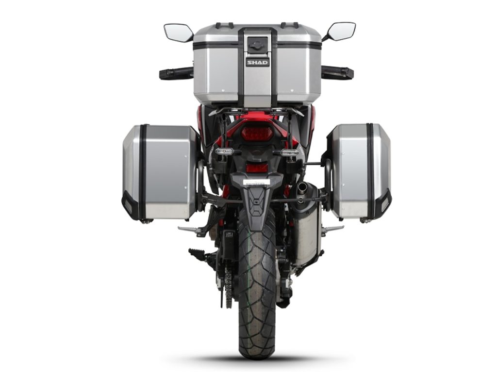 Kompletní sada hliníkových kufrů SHAD Terra obsahuje vrchní kufr TR37 s kapacitou 37L včetně plotny, levý hliníkový kufr TR47 s kapacitou 47L a pravý hliníkový kufr TR36 s kapacitou 36L kvůli umístění výfuku. Pravý kufr tak nebude vyčnívat. Sada obsahuje vše, co potřebujete k montáži obou kufrů.