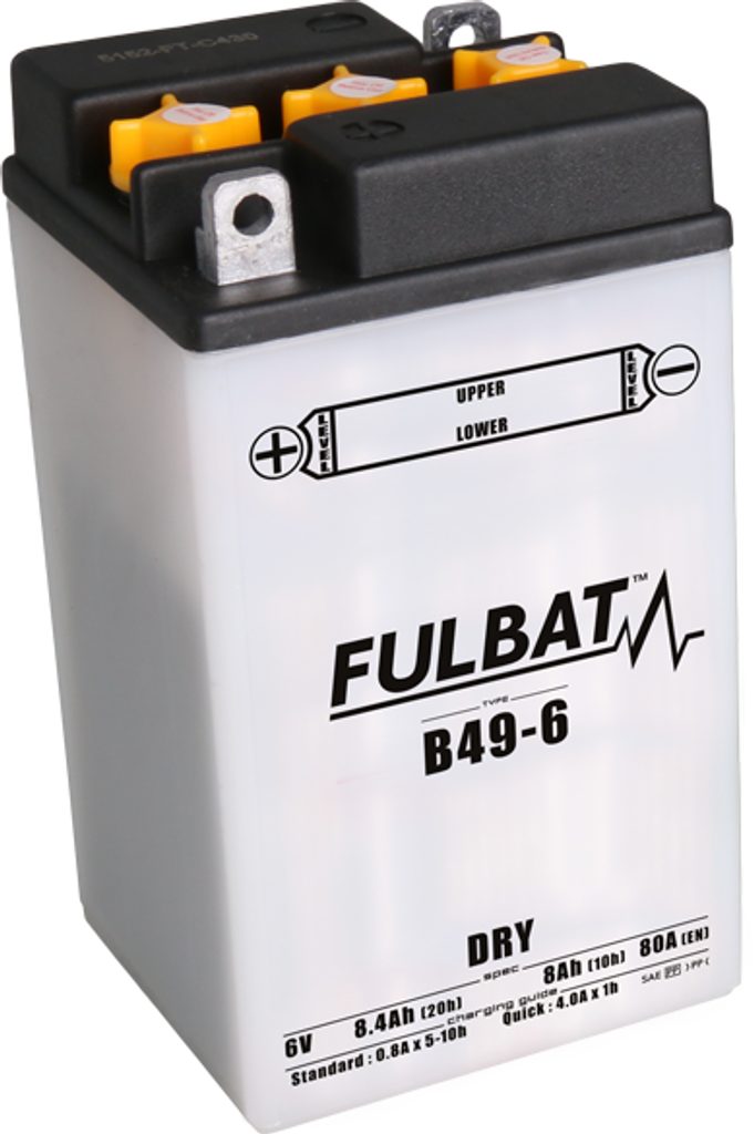Řada DRY suchých baterií nabízí nesrovnatelný výběr 6V a 12V modelů. Používá se v řadě motorek, hlavně v čínských skútrech. Dodává se suchá, nenaplněná kyselinou, takže ji lze dlouho skladovat, aniž by potřebovala kontrolu či dobíjení. Před prvním použitím je potřeba ji naplnit kyselinou (elektrolytem). Ta je dodávána jako součástí balení, ve správném množství.
