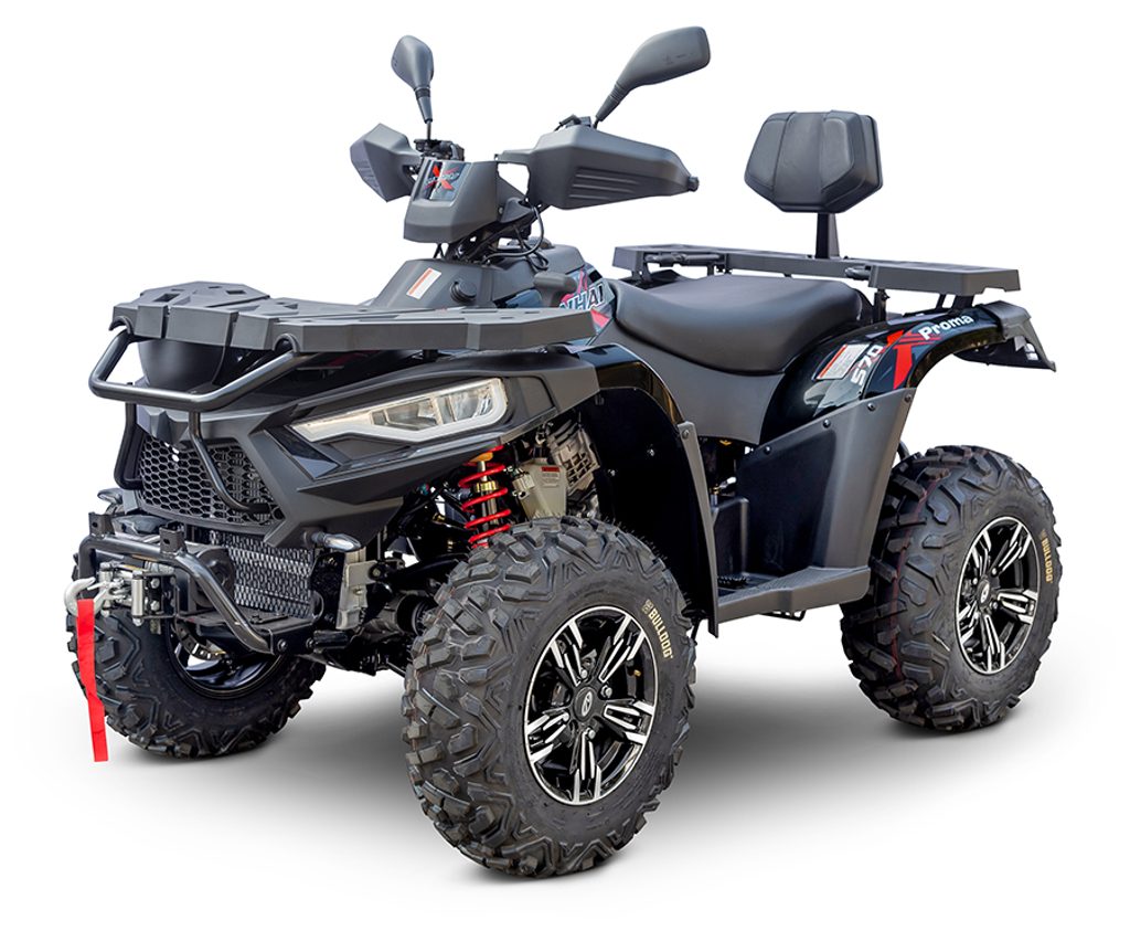 Přes vynikající cenu nabízí Linhai 570 Promax již v základu plnou výbavu. Ta zahrnuje kromě LED osvětlení například atraktivní litá ALU kola se značkovými pneumatikami, elektrický naviják s vysokou tažnou silou 3000lbs a dálkovým ovládáním nebo tažné zařízení. Nechybí masivní přední a zadní nárazník, robustní nosiče vpředu i vzadu, kryty páček a rukou nebo praktická akustická signalizace blikačů.