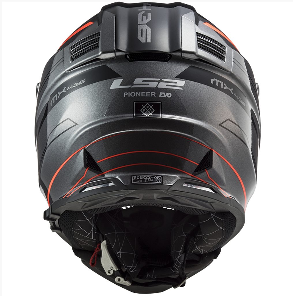 Moderní helma MX436 Pioneer EVO pro enduro, adventure, supermoto a čtyřkolky nabízí vysokou variabilitu, široké možnosti využití a atraktivní design. Vyvinutá ve spolupráci s jezdci mistrovství světa MX, enduro a supermoto, helma Pioneer EVO MX436 těží z dlouholetých úspěchů značky LS2 ve vrcholných soutěžích a dálkových rallye. Vybavená plexištítem, slunečním štítkem a navíc i integrovanou sluneční clonou umožňuje širokou variabilitu v širokém spektru podmínek, lze jí používat s plexištítem nebo MX brýlemi. Nová přepracovaná skořepina kompatibilní s moderními chrániči krční páteře je vyrobena z inovativního patentovaného materiálu Kinetic Polymer Alloy (KPA). Přepracované účinnější větrání a příjemný antialergický kompletně vyjímatelný a pratelný interiér. Emergency Release System s rychle vyjímatelnými lícnicemi umožňuje snadné sejmutí helmy v případě nouze. Rychlé zapínání ocelovou rychlosponou.