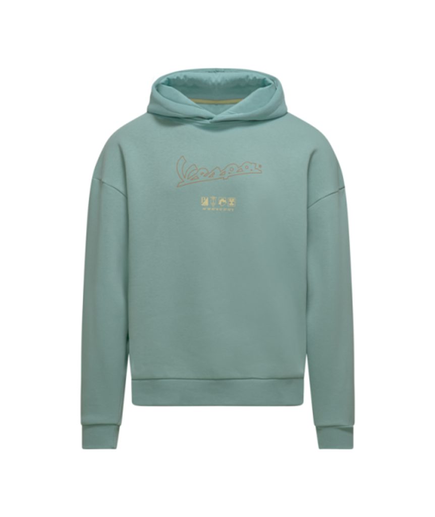 Mikina Vespa DEC s kapucí nabízí pohodlí a teplo díky měkké a česané bavlněné tkanině. Je ideální pro chladnější dny nebo útulné večery a kombinuje klasický styl s moderním designem. Na přední straně je ikonické logo Vespa doplněné novou grafikou Vespa DEC, která představuje svěží interpretaci značky.