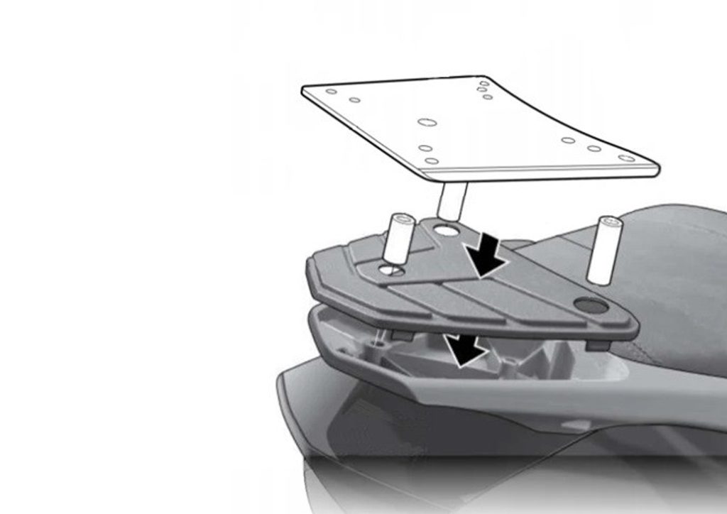 K upevnění vrchního kufru SHAD na motorku stačí namontovat tuto montážní sadu, plotna je vždy součástí kufru (kromě kufrů TR48/TR37).