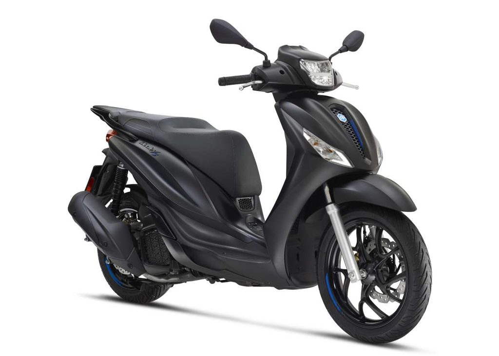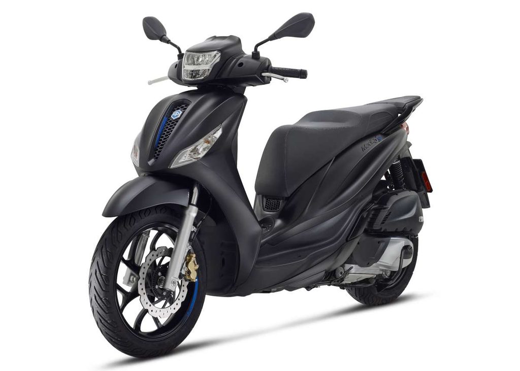 Sportovní podstatu modelu Piaggio Medley S vdechuje jeho elegantní design, zdůrazněný celočernými povrchy na každém detailu. Ty jsou doplněny kontrastní modrou grafikou na kolech a výraznou mřížkou chladiče s voštinovým vzorem. Ochranná přední část plynule splývá s elegantními liniemi zadní části a vytváří tak dokonalou rovnováhu mezi sportovním charakterem a funkčností. Syté barvy a matné povrchové úpravy podtrhují silnou osobnost modelu Piaggio Medley S, který při každé jízdě působí stylově.