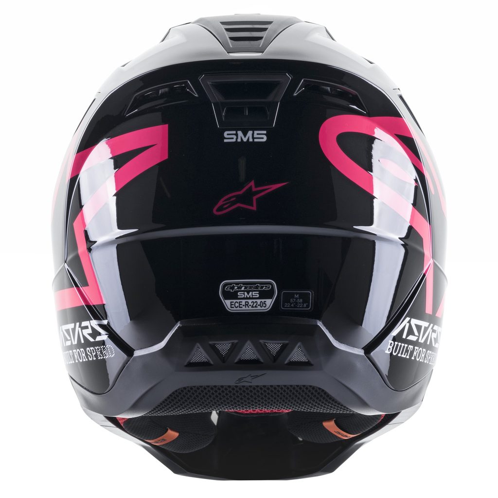 nový model přilby S-M5 je výsledkem více než 5-ti let intenzivního zkoumání, vývoje a testování. Během vývoje byl prozkoumán každý možný aspekt pro zhotovení přilby, která bude bezpečná a promyšleně navržená, tak aby poskytla kombinaci optimální ochrany a komfortu. Lehká skořepina představuje vstřikovaný termoplast ze speciální směsi polymeru, která je navržena a optimalizována pro vstřikování v různých tloušťkách na potřebných místech. Díky tomu je dosaženo optimální kombinace ochrany proti rázovým silám na potřebných plochách za kombinace s dobrým poměrem hmotnosti přilby. Vícepanelové jádro přilby s EPS panely o 5-ti různých hustotách zajišťuje správnou hustotu EPS v konkrétní části přilby. Mezi další, neméně důležité přednosti patří konstrukce polstrování ve spodních/bočních partiích přilby v oblasti límce, které zajišťuje efektivní roznesení sil přenášených na horní oblast klíční kosti. Přilba obsahuje kšilt s patentovaným mechanismem rychloodepínání kšiltu v případě pádu na kšilt stejně jako u vyšších modelů z nabídky terénních přileb ALPINESTARS