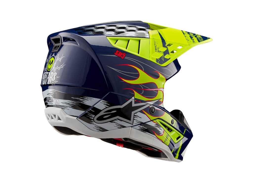 Model přilby S-M5 je výsledkem více než 5-ti let intenzivního zkoumání, vývoje a testování. Vývoje zohlednil každý aspekt pro zhotovení přilby, která bude bezpečná a navržená tak, aby poskytla optimální kombinaci ochrany a komfortu. Lehká skořepina představuje vstřikovaný termoplast ze speciální směsi polymeru, která je vstřikovaná v různých tloušťkách na potřebných místech. Díky tomu je dosaženo skvělé ochrany proti rázovým silám na potřebných plochách s dobrým poměrem hmotnosti přilby. Vícepanelové jádro přilby s EPS panely o pěti různých hustotách zajišťuje správnou hustotu EPS v konkrétní části přilby. Mezi další důležité přednosti patří konstrukce polstrování ve spodních/bočních partiích přilby v oblasti límce, které zajišťuje efektivní roznesení sil přenášených na horní oblast klíční kosti. Přilba obsahuje kšilt s patentovaným mechanismem rychloodepínání kšiltu v případě pádu, stejně jako u vyšších modelů z nabídky terénních přileb ALPINESTARS.