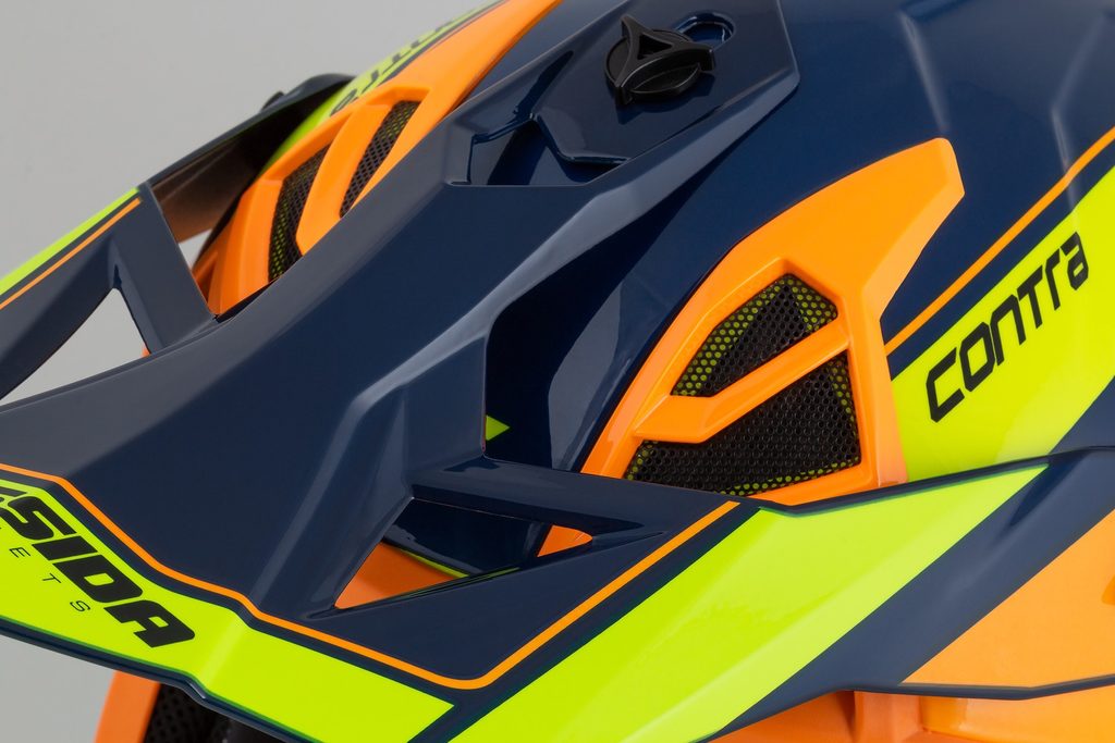 - nastavitelný kšilt s bočními slitinovými a středovým plastovým šroubem pro možnost šetrnějšího sklopení kšiltu v případě kontaktu s překážkou