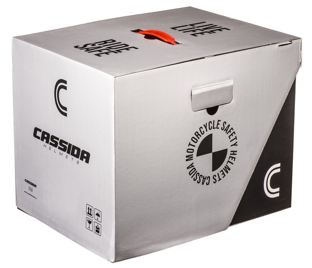 - Prémiový obal CASSIDA HELMETS v podobě dvoudílné krabice s madlem.
