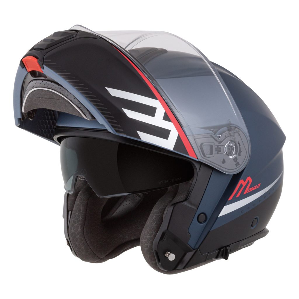Přilba CASSIDA Modulo 2.1 Compass (modrá matná perleť/černá/stříbrná/červená, plexi s přípravou pro Pinlock) 2023