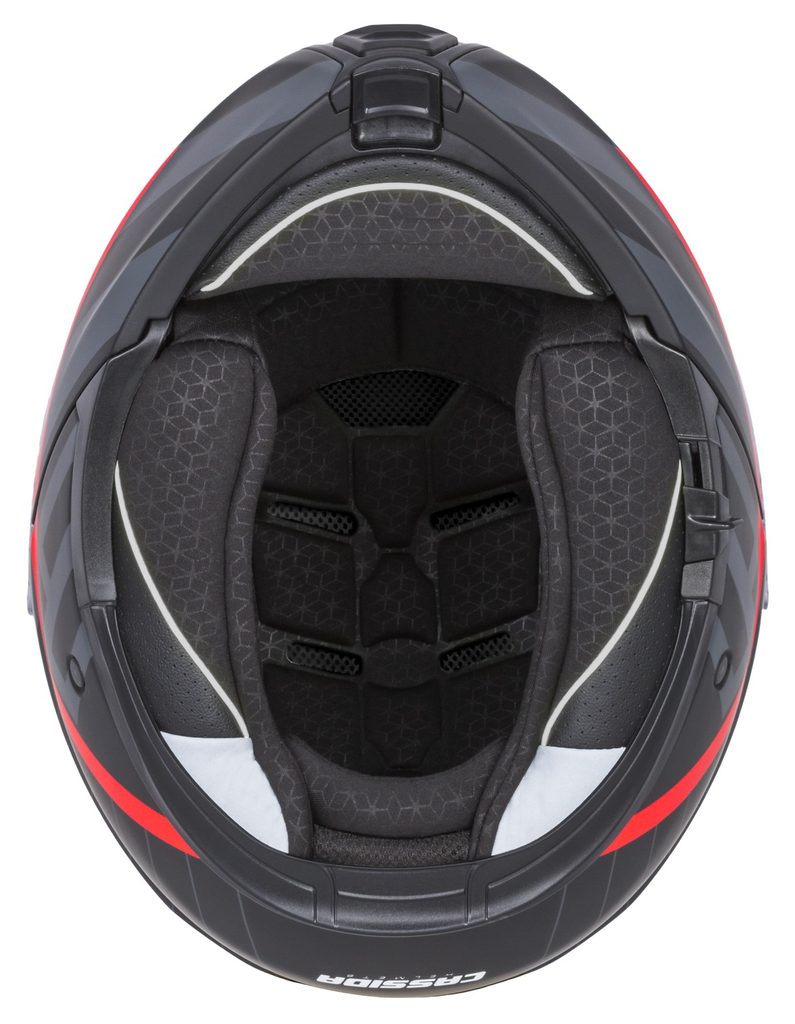 - Prémiový textilní vak na přilbu CASSIDA HELMETS s vnějšími švy, popruhem pro přenášení a polstrováním proti poškrábání laku dostupný jako součást balíčku s produktem.