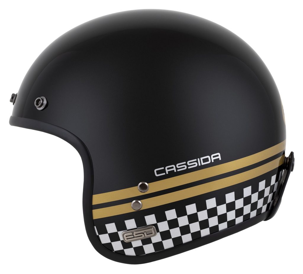 CASSIDA ESO je model otevřené neo retro přilby se sklolaminátovou skořepinou disponující všemi standardy prémiových přileb této kategorie vč. bezpečnostních a certifikačních standardů současných přileb.