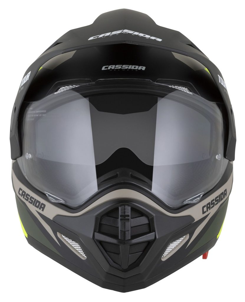 přilba Tour 2.0 X-tra, CASSIDA (písková matná/žlutá fluo/zelená/černá, plexi s přípravou pro Pinlock) 2025