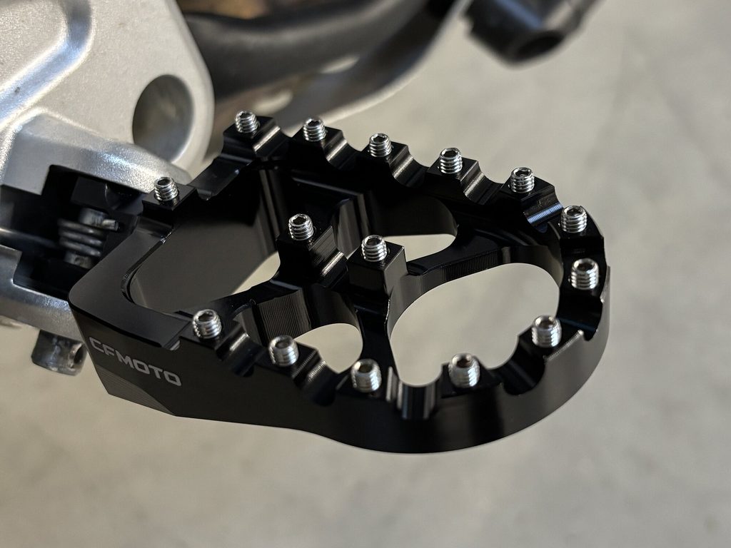 Originální terénní stupačky CFMOTO s ostrými hroty, které zabraňují sklouznutí podrážky a zlepšují tak ovládání stroje. Ideální pro CFMOTO 450MT a 800MT ve všech verzích včetně 800MT‑X.