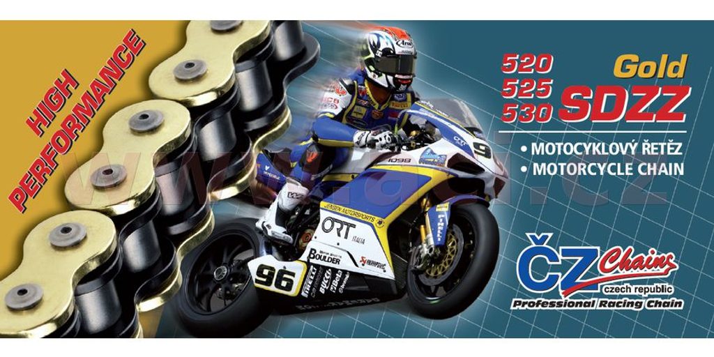 řetěz 525SDZZ, ČZ - ČR (barva zlatá, 106 článků vč. nýtovací spojky RIVET)