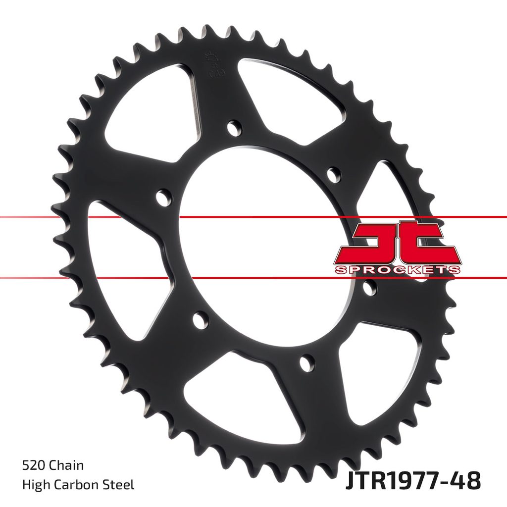 Ocelové zadní rozety JT Steel jsou vyráběny výhradně z nejkvalitnější uhlíkové oceli C49. Sortiment JT Steel nyní zahrnuje více než 2 500 dílů pro všechny motocykly a čtyřkolky (ATV).