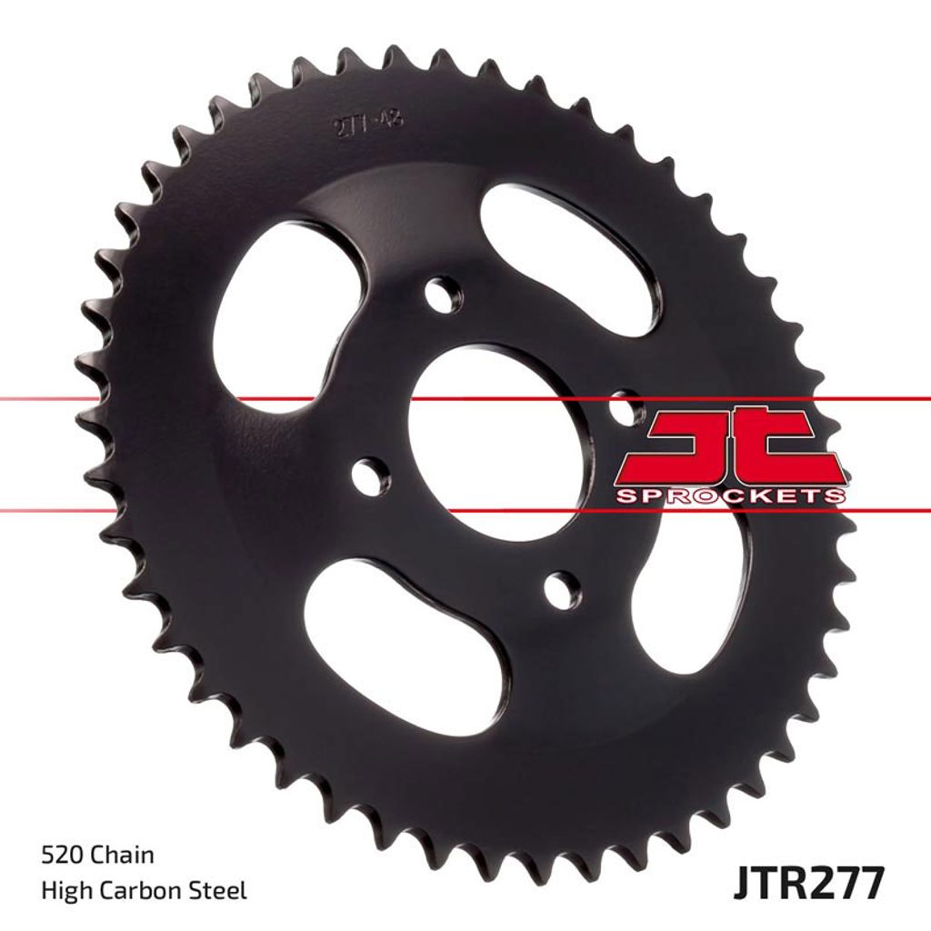 Ocelové zadní rozety JT Steel jsou vyráběny výhradně z nejkvalitnější uhlíkové oceli C49. Sortiment JT Steel nyní zahrnuje více než 2 500 dílů pro všechny motocykly a čtyřkolky (ATV).