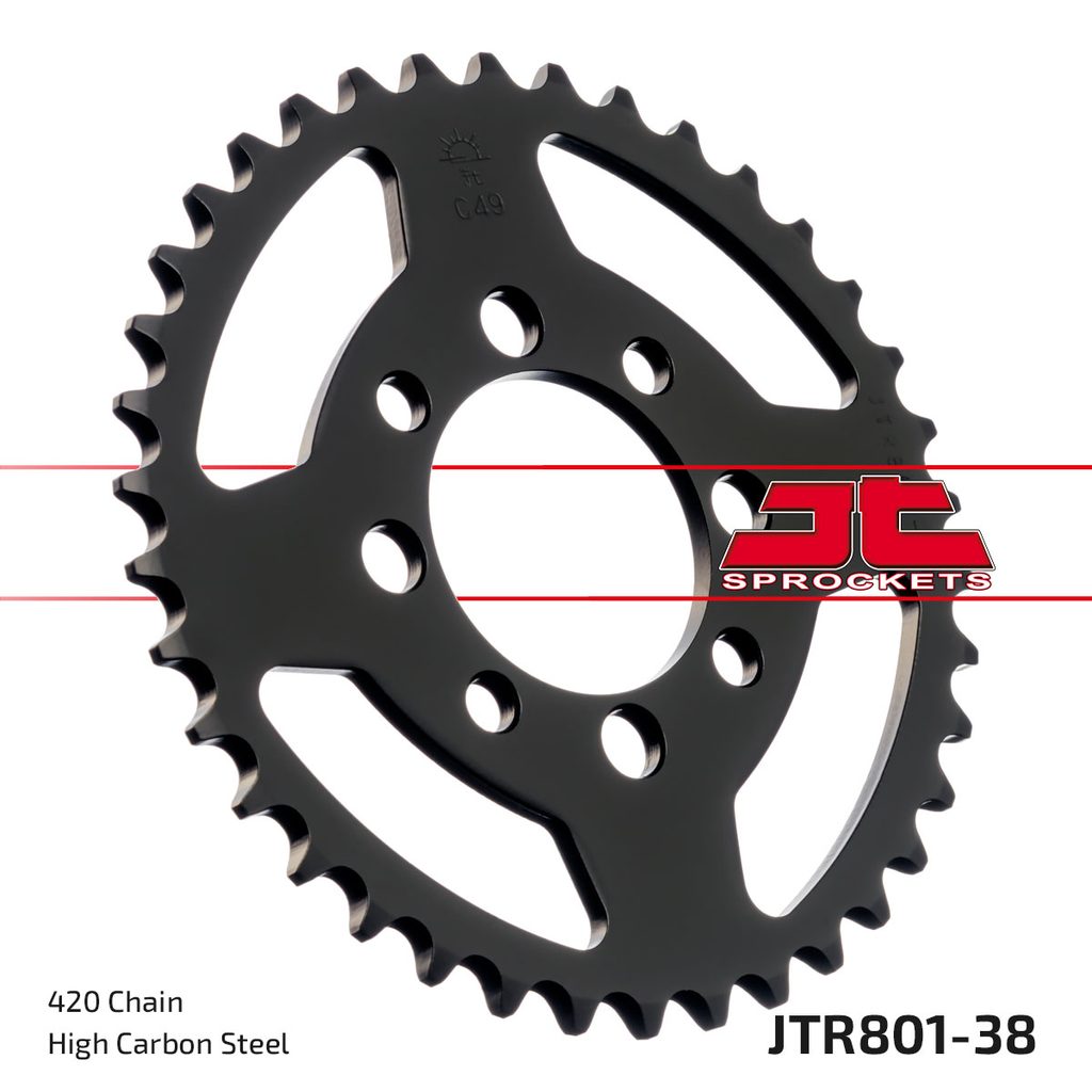 Ocelové zadní rozety JT Steel jsou vyráběny výhradně z nejkvalitnější uhlíkové oceli C49. Sortiment JT Steel nyní zahrnuje více než 2 500 dílů pro všechny motocykly a čtyřkolky (ATV).