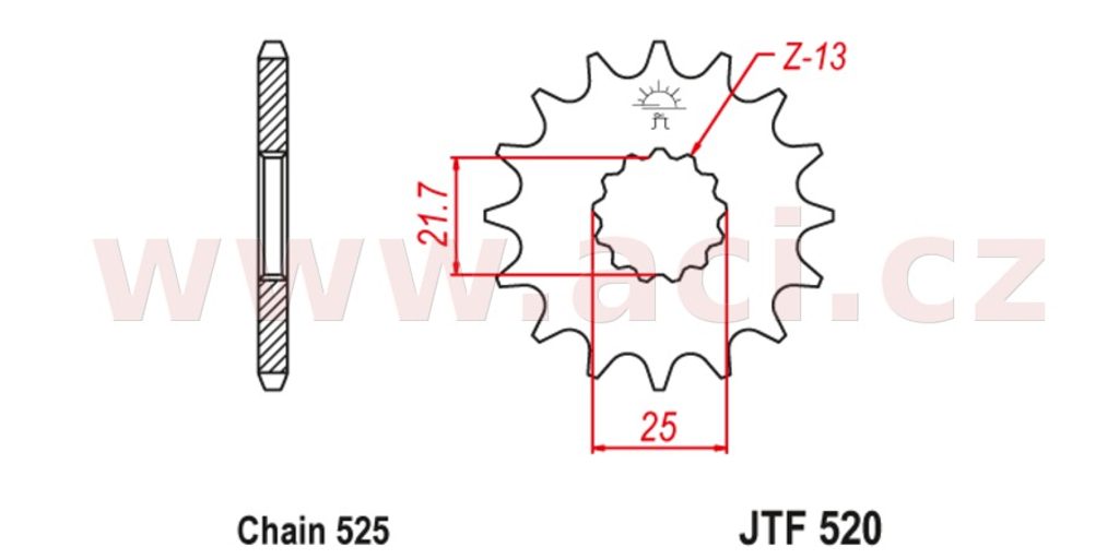 řetězové kolečko s tlumící gumovou vrstvou pro sekundární řetězy typu 525, JT (16 zubů)