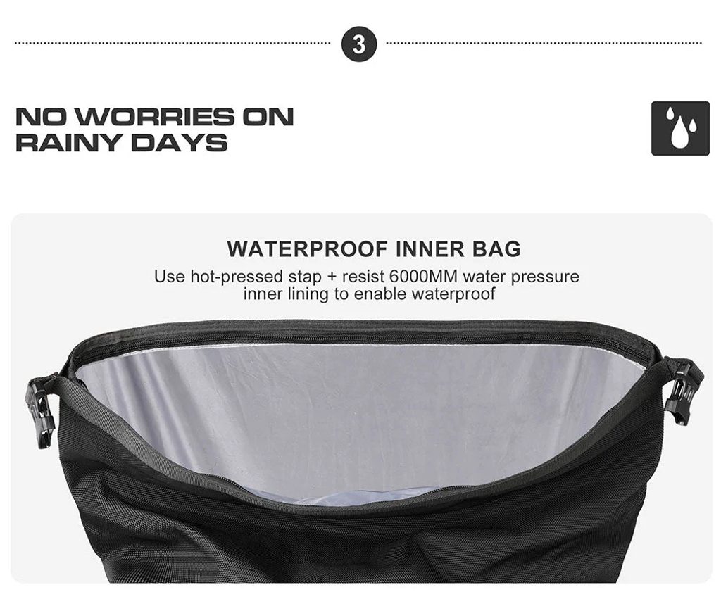 Zadní strana tašky obsahuje nástroj pro rychlé uvolnění. Vhodný pro boční rámy s průměrem trubky 10 mm-22 mm. Díky popruhu lze brašnu použít jako ramenní tašku, kterou lze přenášet křížem nebo v ruce.