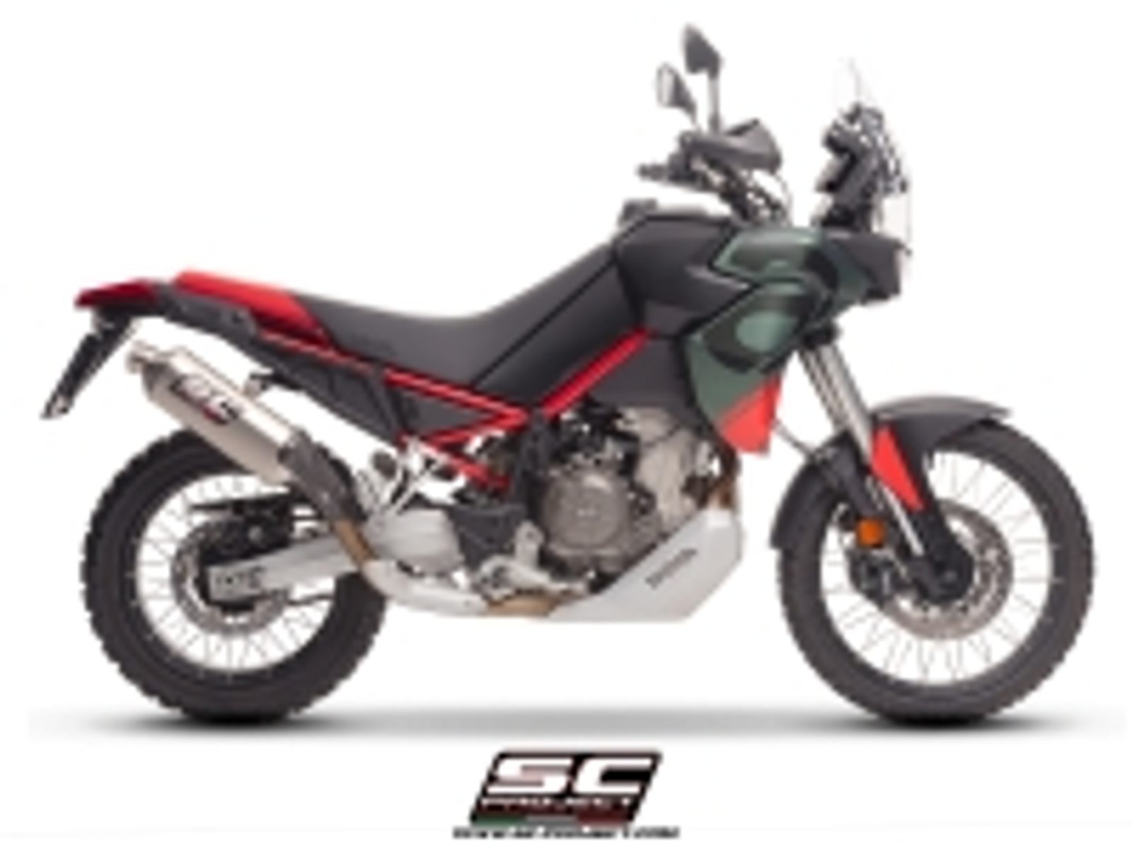 Tlumič výfuku Rally Raid , zjevně inspirovaný prašnými pouštěmi, je výsledkem zkušeností SC-Project z nejextrémnějších terénních soutěží . Použité materiály, výrobní proces, globální přesnost výroby a dokonce i design a objem tohoto tlumiče byly vypočítány a testovány tak, aby se stal skutečným měřítkem pro víceúčelové a terénní motocykly, jako je Aprilia Tuareg 660, a to v plném souladu s předpisy Euro 5+.