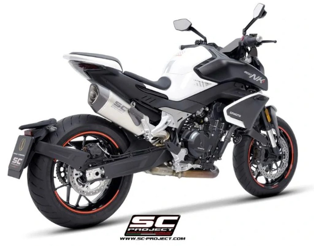 Pro vylepšení moderního vzhledu CFMoto 800NK SC-Project vyvinul specifickou Euro 5 schválenou verzi našeho technologicky nejpokročilejšího produktu: navlékací tlumič SC1-R .