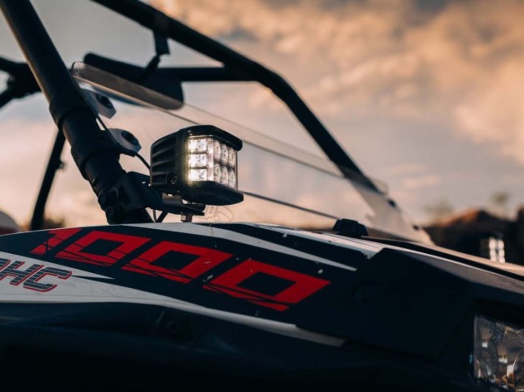 Vysoce svítivá přídavná LED světla s postranním přísvícením, mimořádně široký vyzařovací úhel 120 stupňů, pro čtyřkolky, motocykly, offroady a pracovní stroje, 6+3 LED moduly CREE, rozptýlený paprsek světla, barva světla 6000K, 2x 2800 lm, napětí 9~32V, krytí IP67, černá barva, sada 2 kusů