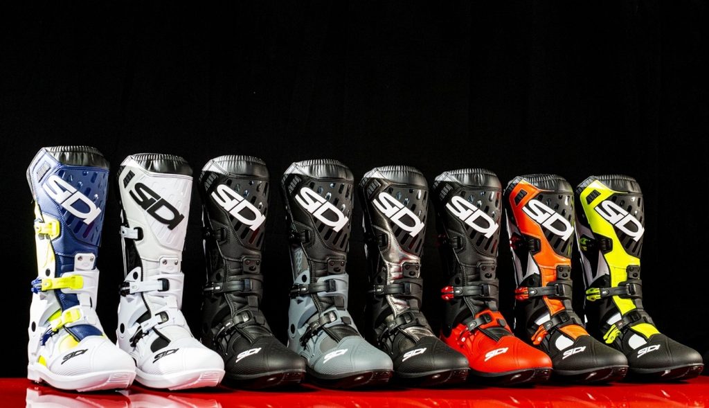 Boty ATOJO SRS se vyznačují zcela novým designem. V oblasti špičky je kompletně potažena plastovým chráničem. Boty jsou opatřeny chráničem nártu: pevná vyměnitelná nylonová vložka chrání nohu v botě zevnitř při sklouznutí ze stupačky nebo startovacího pedálu. Je vybaven dvěma ohebnými klouby. Jeden je umístěn pod kotníkem, aby byla bota tenčí, hladší a dosahovala větší aerodynamiku na vnitřní straně. Vnitřní vložená výztuž má omezený posuv, aby chránila kotník, nárt a achilovu šlachu při vyvrtnutí. Toto řešení poskytuje jezdci větší bezpečnost. Druhý kloub je umístěný nad kotníkem a pracuje synchronně s prvním.