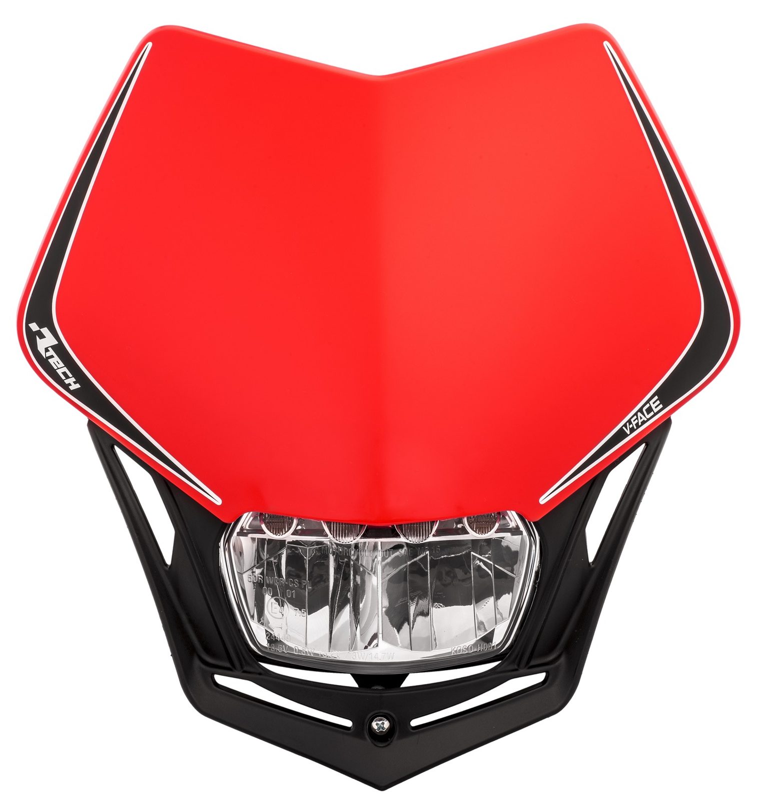 UNI přední maska včetně světla V-Face FULL LED, RTECH (červená/černá)