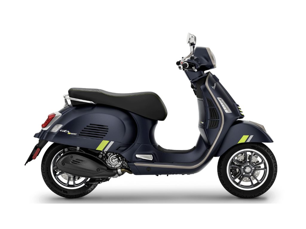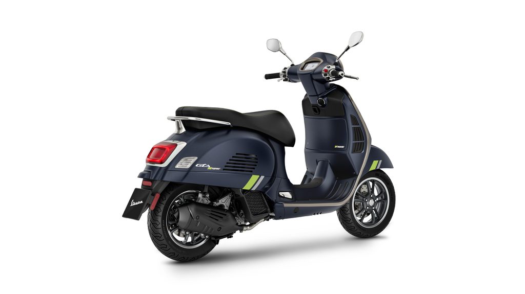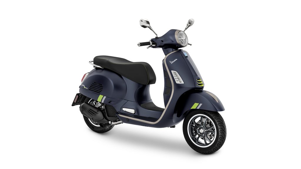 Nejnovější technologie se setkávají s nadčasovým designem značky Vespa v nádherné kombinaci lesklých, texturovaných a matných barev, které vytvářejí dramatické světelné a kontrastní souhry. High-tech povrchové úpravy v teplé šedé a fluorescenční zelené barvě upoutají pozornost, zatímco prvky, jako je sedlo z vysoce kvalitních materiálů s kontrastním prošíváním, přihrádka pod sedlem s LED osvětlením a atraktivní design mnoha dalších detailů, jsou jen některými z důvodů, proč skútry Vespa i nadále zůstávají jedinečnými.