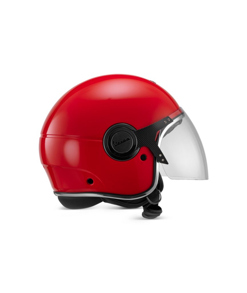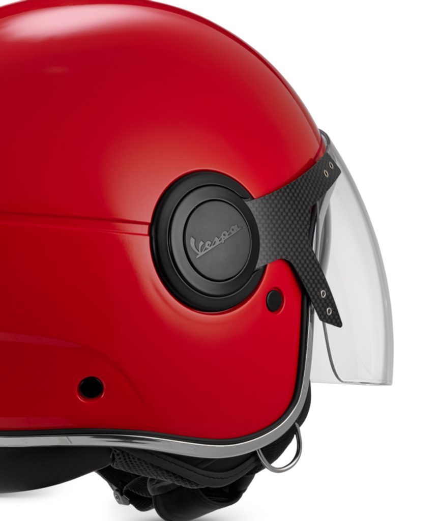 Vespa  ARGENTARIO  - nová otevřená přilba (dříve VJ) z materiálu ABS s chromovaným okrajem, průhledným hledím s ochranou proti poškrábání a vnitřní sluneční clonou. Mikrometrický retenční systém s kroužkem proti krádeži. Nový ventilační systém zajišťuje rychlý odvod tepla, urychluje transport potu a tím udržuje vnitřní materiál chladný a pohodlný po dlouhou dobu. Nový prodyšný, rychleschnoucí a chladivý vnitřní materiál. Omyvatelné a vyjímatelné lícnice a vnitřní podšívka. 22.06 Homologace.