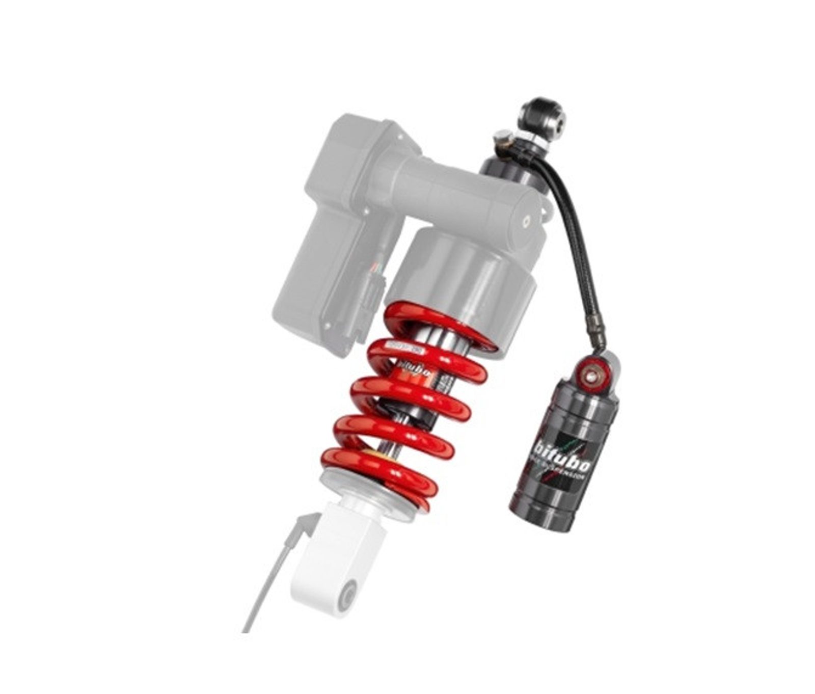ZADNÍ TLUMIČ s oddělenou nádobkou: Pružina BITUBO s nastavením: Předpětí, Odskok, Délka, Komprese. OBSAH BALENÍ: specifický montážní návod.